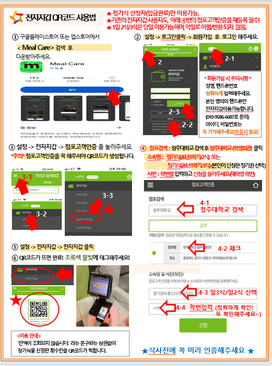 ![]() - 식사 시간: 아침-8~9시30분, 점심: 12~13시30분, 저녁: 17:30~19시 - 식사 가능 식당 : 기숙사 식당(국제문화관) 및 학생식당(대학문화관 ) - 1식 필요시 현금주고 그때 그때 사드시면 됩니다. |