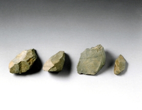 충북 단양군 적성면 애곡리의 수양개유적지에서 수습한 뗀석기이다. 수양개유적은 남한강 유역의 대표적인 구석기유적으로 충주댐수몰지역 지표조사 과정에서 발견되어 충북대학교 박물관에 의하여 발굴조사가 이루어졌다. 이 뗀석기는 편마암 계통의 석재를 이용하여 여러번 떼어내기하여 몸돌을 석기로 이용하였다.
