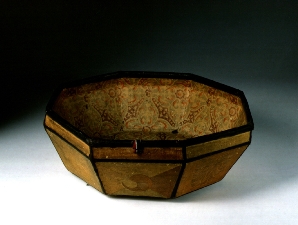 가구 민속류 홈 소장유물 가구 민속류 프린트 가구 민속류 상세보기 - , 제목, 내용, 파일, 작성자등의 정보를 제공합니다. 제목 종이팔각반짇고리 유물명 종이팔각반짇고리 Sewing Box 크기 지름 34.7cm 높이 12.5cm 소장기관 청주대학교 박물관 대나무로 골격을 세운 후 두꺼운 종이루 붙여 8각형 상자를 만들고 색종이로 태극무늬 등을 장식하였다. 현재 뚜껑이 없어졌으며 안에 솜뭉치를 색천으로 감싸서 만든 바늘꽂이가 달려있다. 유물정보의 설명 및 사진에 대한 저작권은 청주대학교박물관에 있으며, 청주대학교박물관의 동의 없이 소장품 정보를 무단으로 복제하거나, 상업적으로 이용할 수 없습니다. 파일 1407735525054.jpg 작성자 송영찬 목록 이전글 윤도(輪圖) 다음글 백자청화대접지석(白磁靑華大楪誌石)