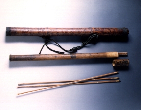 화살통은 동개와 같이 戰場에서 쓰이기도 하나 武人이나 선비가 齋中用器로서 日用할 수도 있고 寶劍과 같이 但身을 防하고 邪를 辟하며 觀德의 氣를 養하고 剛毅果決의 氣를 有利하게 한 것이었다. 이 화살통은 세 마디의 대나무통을 이용하여 만들었는데 한쪽 끝은 막고 한쪽에는 뚜껑을 달았다. 상·하단은 놋쇠판으로 장식을 하였고 중간의 두 마디에는 고리를 달아 끝을 매어 어깨에 메고 다닐 수 있게 되었다. 전면에 걸쳐 대나무 의 겉대를 이용한 十長生무늬가 화려하게 조각되어 있다